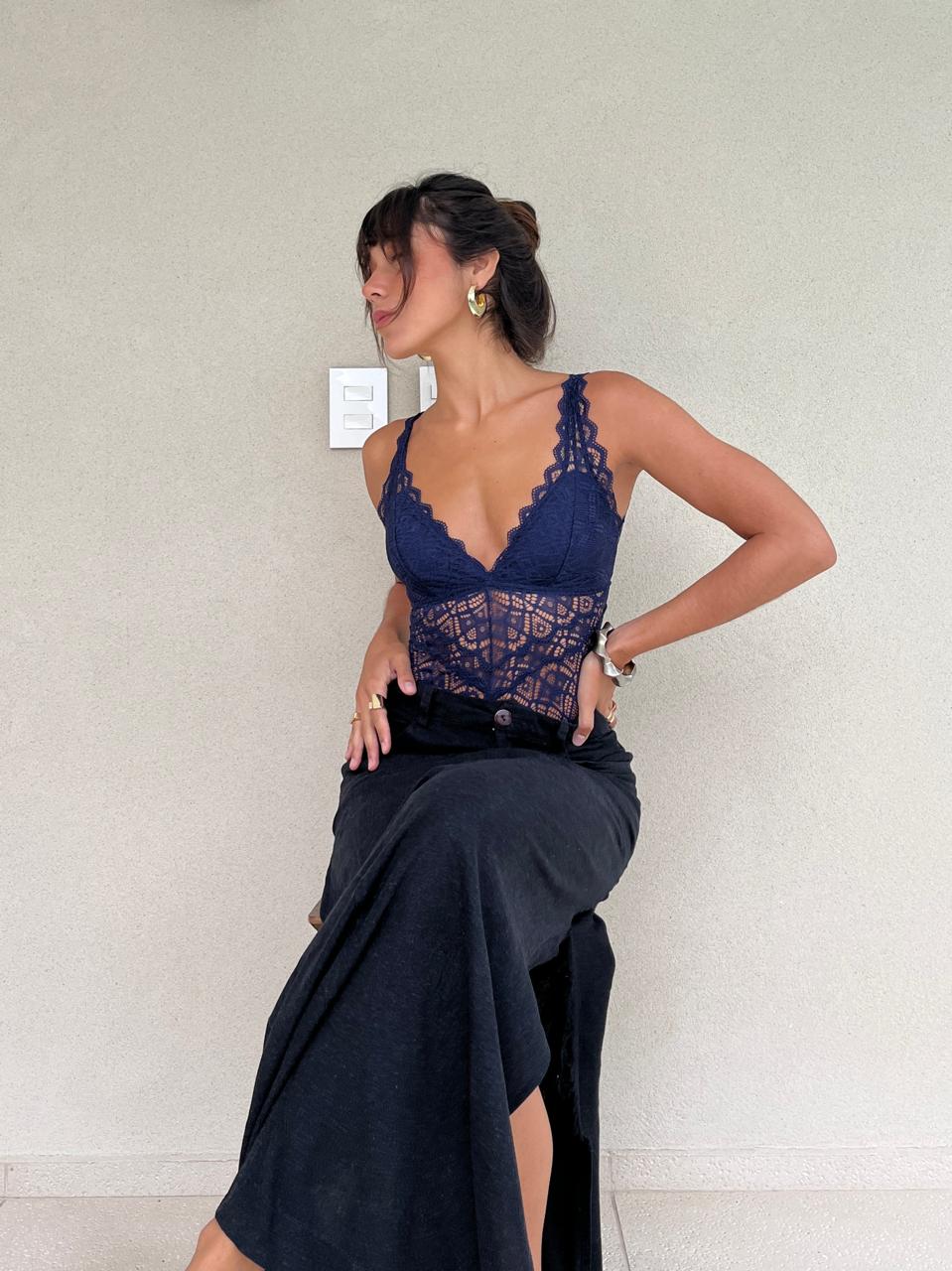 Body Renda Azul