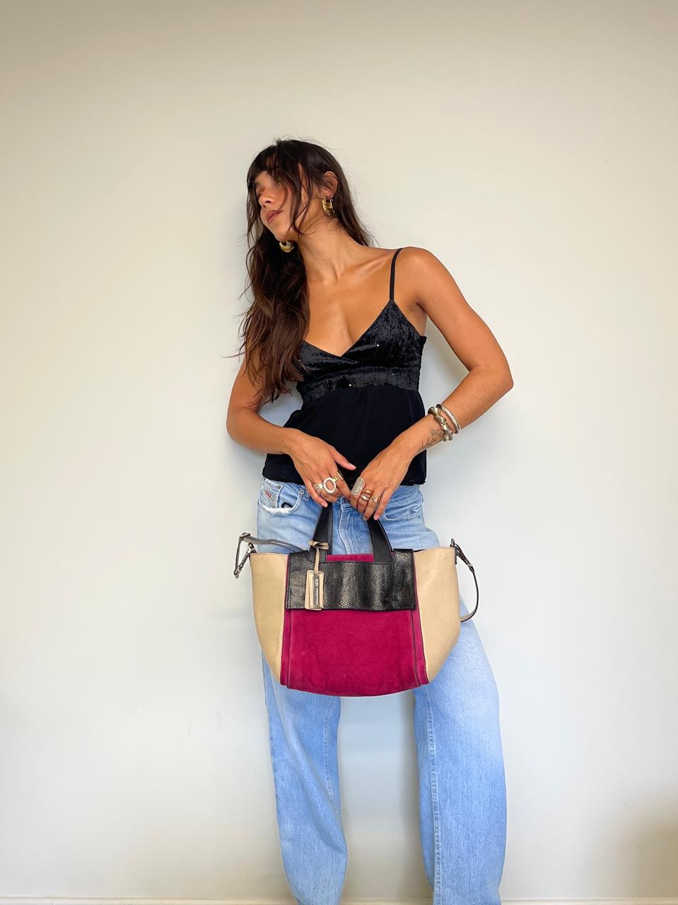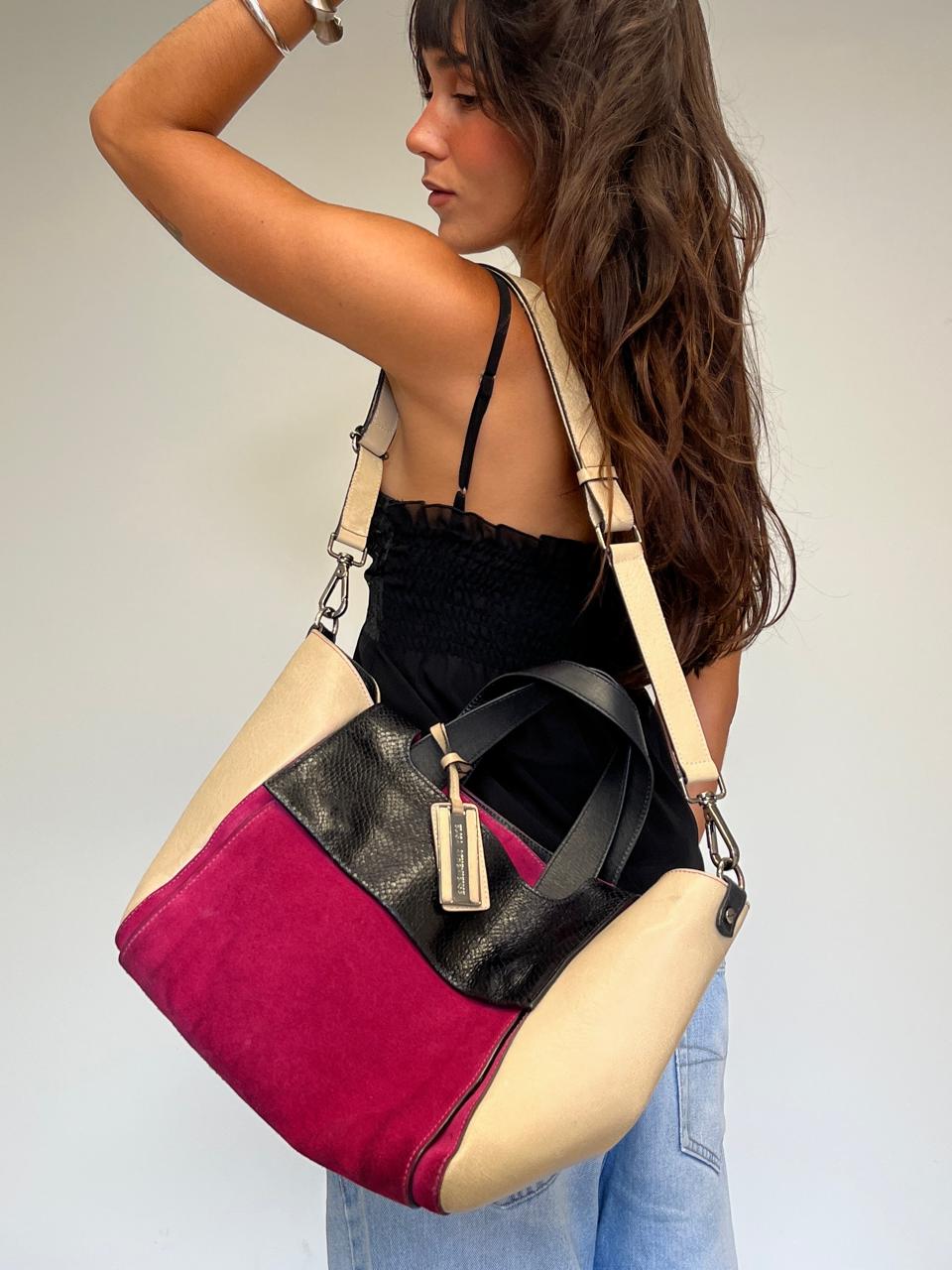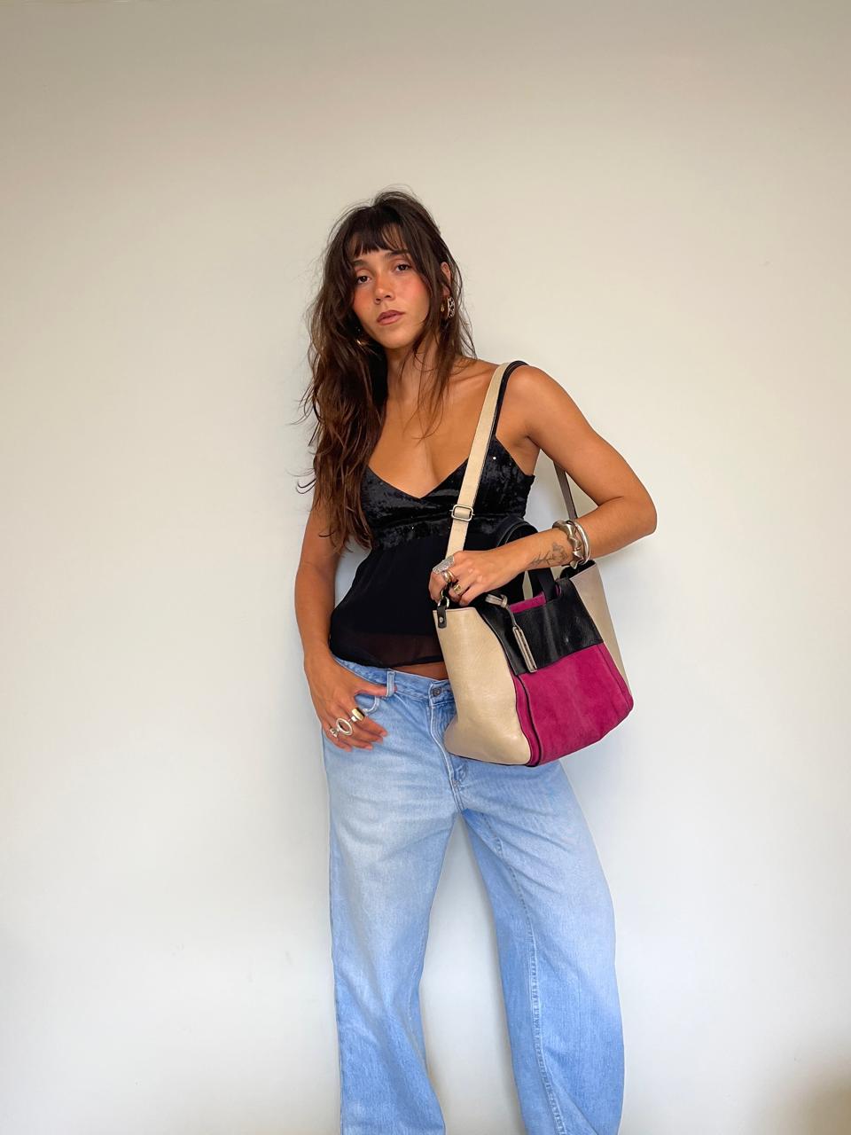 Avaria: tecido levemente escurecido na parte traseira da bolsa, como é mostrado nas fotos.